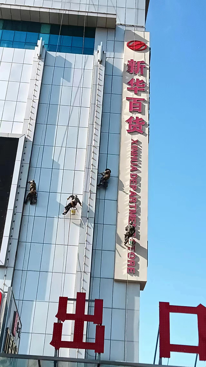 我司承接固原新華百貨外墻清洗項目